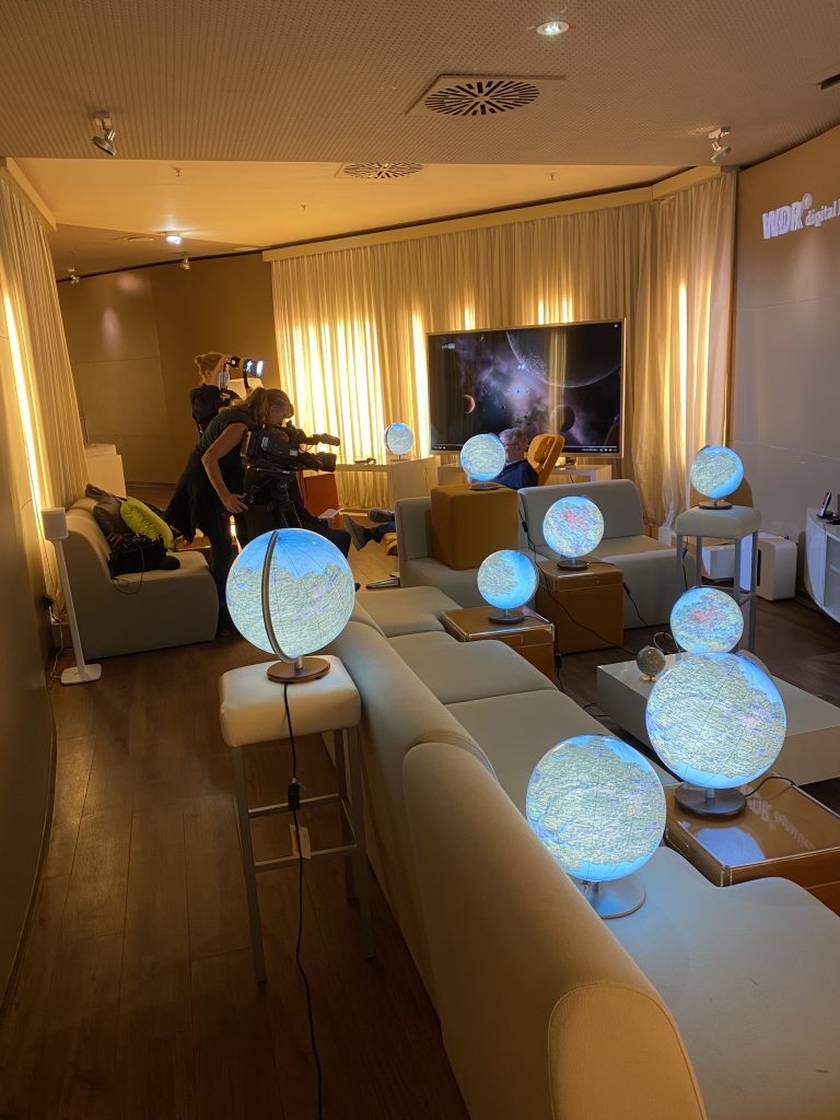 Aber auch mit anderen Heimatgloben ging es ins Fernsehen. So berichtete der SWR über den Pfalz-Globus und der WDR in seinen Regionalprogrammen z.B. über den Ostwestfalen-Lippe-Globus, den Sauerland-Globus, den Münsterland-Globus und den Regioglobus Köln-Bonn-Oberbergisches Land https://deinheimatglobus.de/unsere-globusregionen/. Für den Bericht zu dem letzten Globus wurden wir sogar nach Köln eingeladen. Dort erlebten wir einen aufregenden Tag im WDR-Studio.